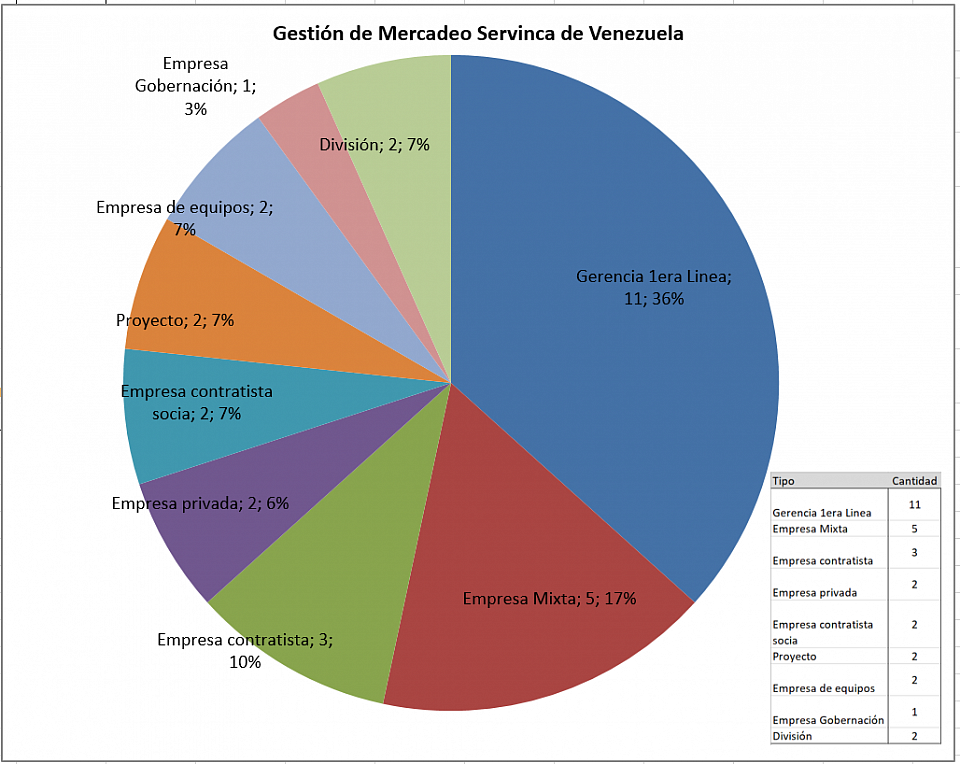 Empresa Mixta 7, Empresa contratista 4, Empresa privada 2, Empresa contratista socia 4, Proyecto 2, Empresa de equipos 5, Empresa Gobernación 1.